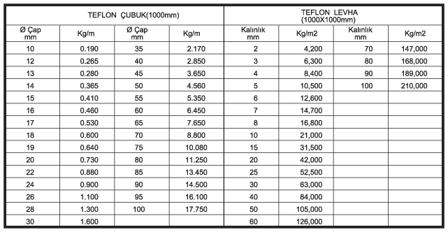 - TEFLON ÇEŞİTLERİ ( Özgül Ağırlığı: 2,1 ))