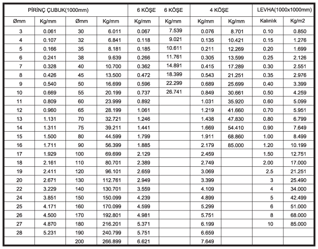 - PİRİNÇ ( SARI ) MAMÜLLERİ ( Özgül Ağırlığı: 8,5 ) - MS 58 : Çubuk, Lama, Altıköfle, Köflebent, ince kangal tel olarak imal edilir. - MS 63 : Boru ve Profil olarak imal edilir. - MS 70 : Levha ve flerit olarak imal edilir. - İstenilen ölçü ve miktarda özel olarak imalat yapılır.